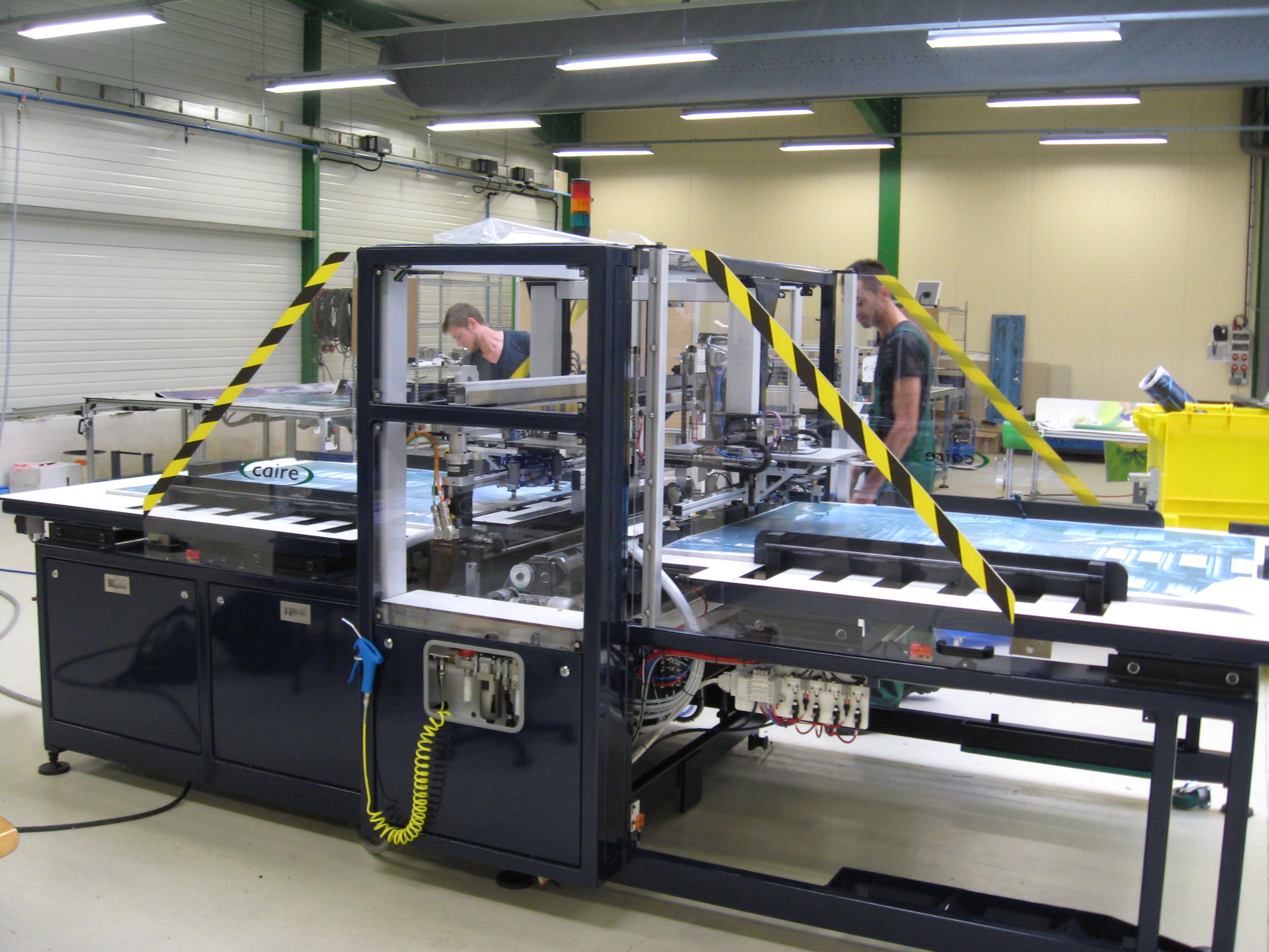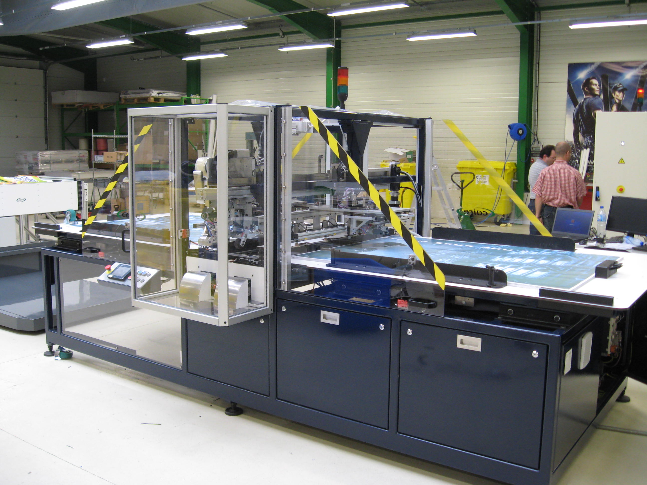 Cette machine assemble automatiquement les quarts d’affiches en demi-affiche.