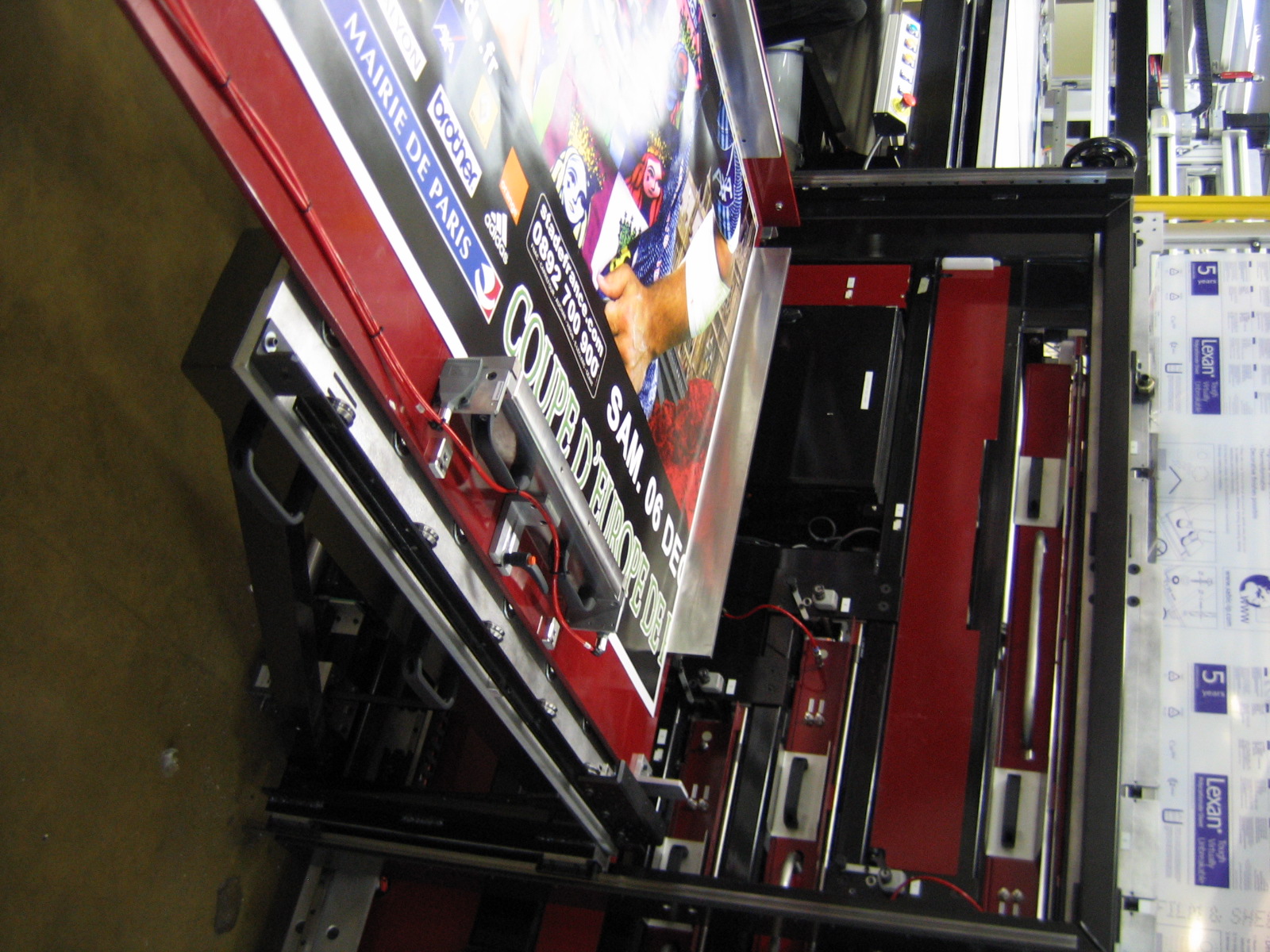 Cette machine assemble automatiquement les quarts d’affiches en demi-affiches.