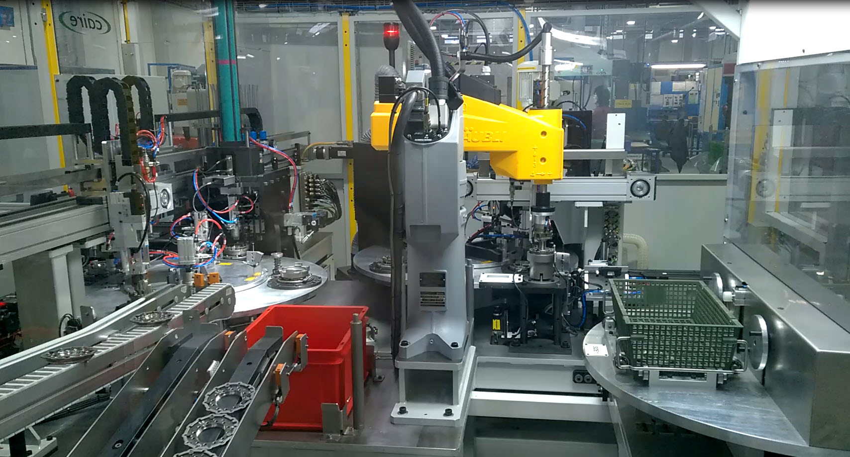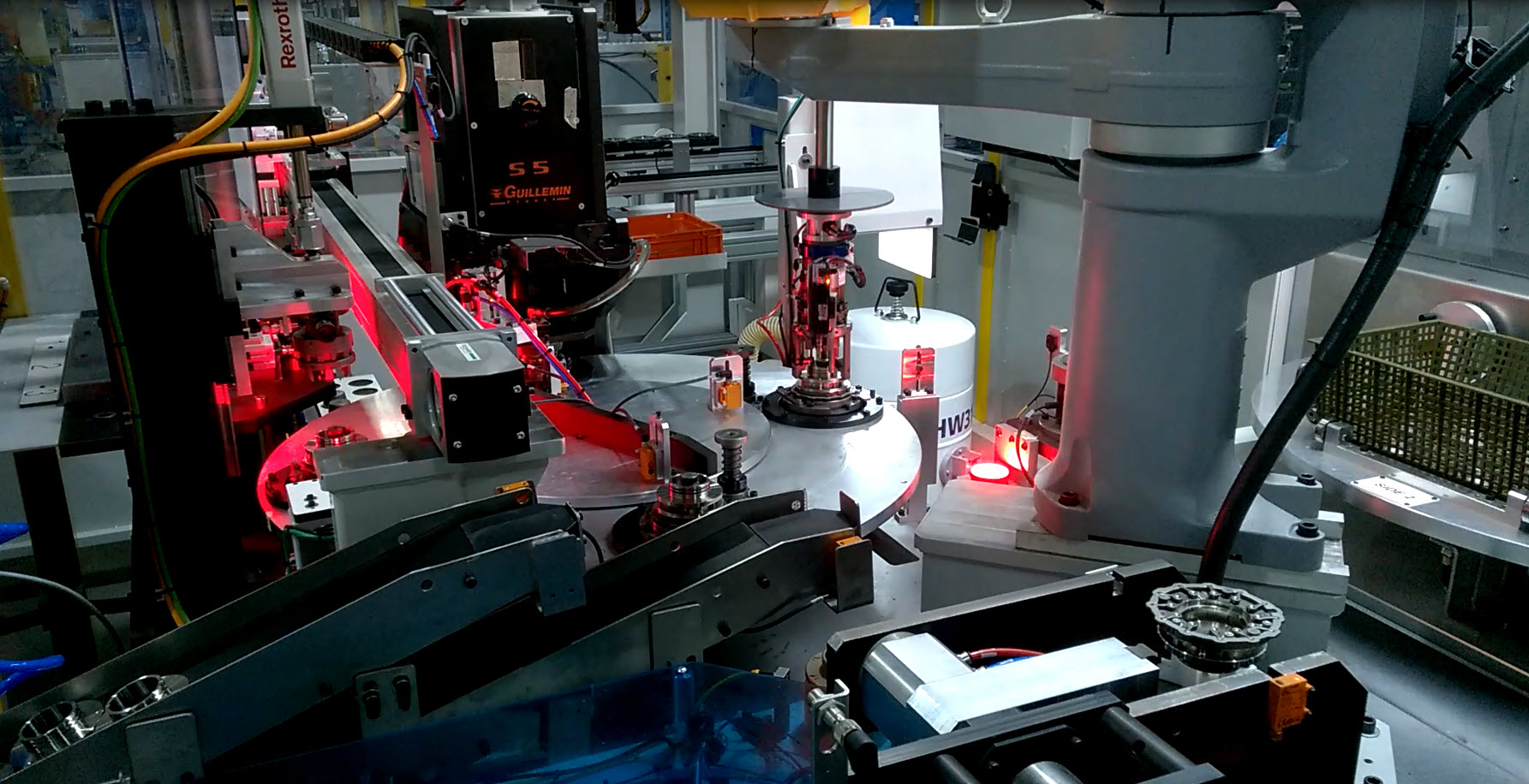- Base machine : plateau rotatif + robot