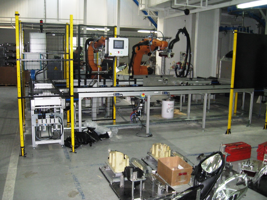 - Ilot robotisé dépose colle et assemblage phare